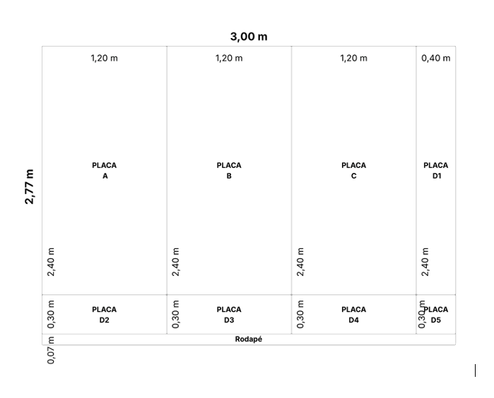 Área Total da placa = 2,40 x 1,20 = 2,88 m²